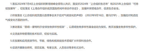 7月8日,以“攜手綠色發(fā)展,推動(dòng)人與自然和諧共生”為主題的上海合作組織國(guó)家綠色發(fā)展論壇在山東省青島市開幕。本次論壇是中方作為輪值主席國(guó)舉辦的首場(chǎng)高級(jí)別活動(dòng),旨在推動(dòng)上合組織國(guó)家在綠色能源、綠色產(chǎn)業(yè)、應(yīng)對(duì)氣候變化等領(lǐng)域深度合作。會(huì)上發(fā)布“共建綠色發(fā)展伙伴關(guān)系,共促可持續(xù)發(fā)展”倡議。(據(jù)中國(guó)政府網(wǎng)、生態(tài)環(huán)境部)