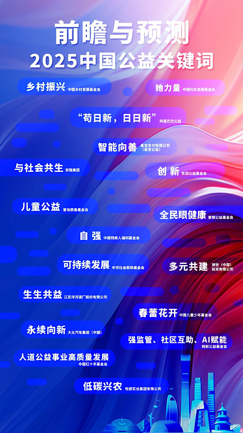 2025年是“十四五”規(guī)劃收官之年,標志著中國公益事業(yè)邁入新里程。在第九屆中國公益年會上,《公益時報》聯(lián)合公益?zhèn)鞑ダ硎聲蓡T單位,以行業(yè)前瞻視角提煉年度議題,并發(fā)布17個“2025中國公益關(guān)鍵詞”。
