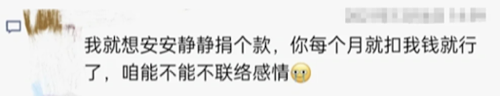 “每月10日扣款短信準(zhǔn)點(diǎn)送達(dá),一周接到3個(gè)以上提額電話(huà),還有‘多捐就能多救孩子’的道德勸說(shuō)。好心幫扶,現(xiàn)在卻成為負(fù)擔(dān)。”微信留言中,一位網(wǎng)友的吐槽引發(fā)廣泛共鳴。