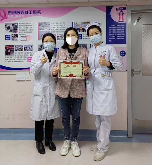徐美琴:是偶然也是必然。此前在蘇州做過(guò)社區(qū)社工和司法社工,回到武漢后,一則醫(yī)務(wù)社工的招聘讓自己找到了興趣和方向??赡苁且?yàn)榻?jīng)歷了疫情,對(duì)醫(yī)療場(chǎng)域有了更多的關(guān)注,因此,醫(yī)務(wù)社工瞬間就引起了我的注意。但醫(yī)務(wù)社工是社工領(lǐng)域的天花板,是充滿挑戰(zhàn)的,如果只是一時(shí)興起就決定做這份工作,顯然是不能長(zhǎng)久的。我也是在后來(lái)的實(shí)踐中,確認(rèn)了自己對(duì)這個(gè)領(lǐng)域確實(shí)感興趣,患者也確實(shí)需要醫(yī)務(wù)社工的介入,且醫(yī)務(wù)社工又能夠?qū)崒?shí)在在幫助到患者,才堅(jiān)定了自己做醫(yī)務(wù)社工的決心。