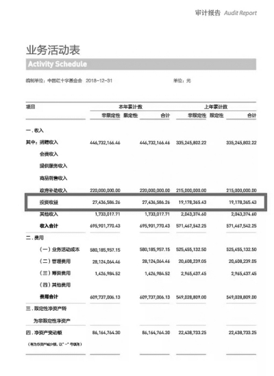 中國紅十字基金會《審計(jì)報(bào)告》顯示,2018年基金會取得投資收益27,436,586.26元■ 本報(bào)記者 張明敏