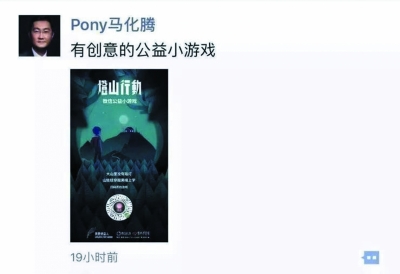 2018年11月17日,命名為《燈山行動(dòng)》的游戲一經(jīng)投放便得到大量關(guān)注,這是首款公益主題的微信小游戲,馬化騰也發(fā)了一條朋友圈表示支持。