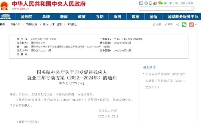 三年新增殘疾人就業(yè)100萬!國務(wù)院辦公廳印發(fā)《促進(jìn)殘疾人就業(yè)三年行動方案(2022—2024年)》
