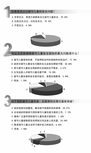 ■ 本報記者 張雪弢 5月27日下午4點左右,湖北省孝感市孝昌縣季店鄉(xiāng)發(fā)生一起慘劇,5名年僅12歲左右的女孩在季店河中溺水。直到晚上7時許,5名孩子才被打撈上岸,經(jīng)現(xiàn)場120急救醫(yī)護人員檢查后宣告死亡。 近期接連發(fā)生兒童溺亡事件,江西宜春一家5名留守兒童溺亡,古稀老人痛失5孫。廣東化州數(shù)百人搜救4名被洪水沖走兒童未果······ 事實上,除了溺水,交通事故、食物中毒等傷害都在威脅著留守兒童的安全。 留守兒童是我國經(jīng)濟轉(zhuǎn)軌和社會轉(zhuǎn)型過程中出現(xiàn)的特殊群體。根據(jù)第六次全國人口普查結(jié)果,目前全國共有流動人口2.6億,截至2010年年底,全國有留守兒童5600萬人。 留守兒童安全困境令人擔憂,這種困境是社會轉(zhuǎn)型期的特殊產(chǎn)物,將在很長一段時間內(nèi)存在,這一問題如果不能很好地重視并加以解決,會導致更嚴重的社會問題。 在我國,每年因傷害死亡人數(shù)約為70至75萬人,占死亡總?cè)藬?shù)的10%左右,由意外傷害導致的兒童死亡數(shù)量占0至14歲青少年死亡原因的第一位。傷害除了造成巨大的人員傷亡外,還產(chǎn)生了巨大的經(jīng)濟和社會負擔。 那么,怎樣才能保障留守兒童的安全?留守兒童傷害的預防目前面臨什么樣的問題?《公益時報》與搜狐公益聯(lián)手推出的“益調(diào)查”結(jié)果顯示,79.33%的網(wǎng)友表示,同時也希望大家都能關(guān)注留守兒童安全。 調(diào)查結(jié)果: 本次調(diào)查從6月1日14時至6月3日20時,共有1011位網(wǎng)友參與調(diào)查。 “益調(diào)查”結(jié)果顯示,79.33%的網(wǎng)友表示非常關(guān)注留守兒童安全問題,同時也希望大家都能關(guān)注留守兒童安全。16.33%的網(wǎng)友表示以前沒關(guān)注過留守兒童安全問題,但以后會關(guān)注。 那么,目前保障留守兒童安全面臨的最大問題是什么? 56.68%的網(wǎng)友認為,政府對留守兒童安全問題的關(guān)注及相關(guān)幫助不夠。19.59%的網(wǎng)友認為,父母及家人對留守兒童關(guān)愛不夠。12.76%的網(wǎng)友認為,留守兒童受到傷害,不能得到及時的救助和創(chuàng)傷治療。還有一部分網(wǎng)友認為,參與留守兒童安全救助的社會組織還不夠多、留守兒童自身的安全意識缺乏等因素也是能否保障留守兒童安全的關(guān)鍵。 對于預防留守兒童傷害,網(wǎng)友們最期待在哪方面有突破? 近六成網(wǎng)友表示,希望政府層面加強重視,解決留守家庭的實際困難。24.04%的網(wǎng)友期待留守兒童能夠更多的得到父母及家人的關(guān)愛。而社會組織積極參與預防留守兒童傷害方面的工作、媒體廣泛宣傳預防留守兒童傷害方面知識、教育留守兒童主動學習保護自己的知識等方面也是一部分網(wǎng)友期待能夠有所突破的。 |
