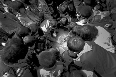 這組照片選自由中國紅十字基金會(huì)主辦的“天使·映像——‘天使之旅’付春來攝影作品展”中的彝良支教篇,這場展覽中,不論攝影師還是畫面中的人物,都是志愿者。 自2012年10月在云南省昭通市彝良縣開展第一期“天使之旅”行動(dòng)以來,中國紅基會(huì)已在云南、河南、四川先后開展了6期“天使之旅”行動(dòng),內(nèi)容包含抗震救災(zāi)、災(zāi)后重建調(diào)查、災(zāi)區(qū)鄉(xiāng)村學(xué)校支教、貧困重病患兒生存情況調(diào)查、抗旱需求調(diào)查及救助項(xiàng)目規(guī)劃等,已有超過200位志愿者參加了這一系列行動(dòng)。 中午時(shí)分,在云南彝良鍋圈巖小學(xué)里唯一的一張乒乓球臺(tái)前,正在進(jìn)行一場師生對(duì)決。 “天使之旅—彝良支教”志愿者們來到了洛澤河鎮(zhèn)嶺東村陰山社的周元勇、周元偉兄弟家里進(jìn)行家訪。在家徒四壁的老屋中,孩子們拿出一張嶄新的中國地圖,小心翼翼地鋪展在堂屋中央,向志愿者呂思婧詢問:“老師,北京在哪里?” 志愿者張留槳來自湖北,是一位退役的邊防戰(zhàn)士,在家里是幾臺(tái)大型農(nóng)機(jī)具的操作手,所以課余幫助附近老鄉(xiāng)干活是他最樂意干的事情。 由于受地震影響,學(xué)校資金短缺,張留槳想出了各種方法來豐富學(xué)生們的課余生活。 志愿者滕少華原是陜西體工隊(duì)的散打教練,來到云南彝良鍋圈巖小學(xué),除了教孩子們的體育課之外,她還擔(dān)當(dāng)起美術(shù)老師的角色,從一年級(jí)一直教到六年級(jí)。課間,在抗震板房教室狹小的過道里,她和孩子們一起跳橡皮筋。 4月9號(hào),是她的生日。家住在附近的學(xué)生們,自發(fā)地來到“天使驛站”,慶賀自己的老師在異鄉(xiāng)的生日。生日歌響起的時(shí)候,滕少華的眼睛里閃起了淚花。 2012年年底,在中國紅十字基金會(huì)與中央電視臺(tái)12頻道“社會(huì)與法”欄目聯(lián)合發(fā)起了“暖春行動(dòng)”,收集了云南彝良鍋圈巖小學(xué)的孩子們的新年愿望。一臺(tái)折疊自行車和一個(gè)書包,這些普普通通的物品,對(duì)于大山里的孩子來說,卻相當(dāng)珍貴。 照片中的一對(duì)情侶是志愿者房興和他的女朋友,房興今年剛剛19歲,是一位退役的武警戰(zhàn)士。遠(yuǎn)在上海讀書的女朋友千里迢迢來看望在彝良嶺東小學(xué)支教的他。清明小長假的最后一天,他們帶著孩子們?nèi)ヌで唷?/p> 在野外,房興帶著孩子們一起在小河里捉螃蟹。 |