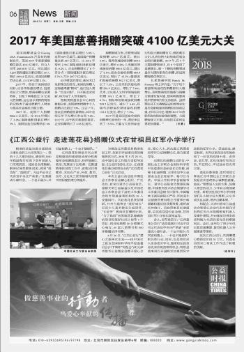 2017年美國慈善捐贈突破4100億美元大關