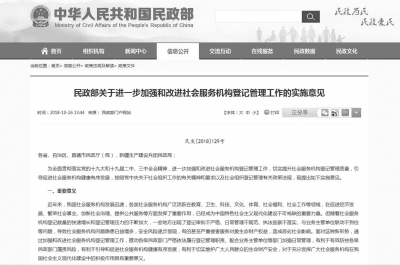 10月26日,民政部對(duì)外發(fā)布了《關(guān)于進(jìn)一步加強(qiáng)和改進(jìn)社會(huì)服務(wù)機(jī)構(gòu)登記管理工作的實(shí)施意見(jiàn)》。 《實(shí)施意見(jiàn)》指出,隨著社會(huì)服務(wù)機(jī)構(gòu)登記數(shù)量的快速增長(zhǎng)和登記管理壓力的不斷加大,一些地方出現(xiàn)了登記審批不嚴(yán)格、日常管理不規(guī)范、執(zhí)法監(jiān)察不落實(shí)、與業(yè)務(wù)主管單位聯(lián)動(dòng)不到位等問(wèn)題,導(dǎo)致社會(huì)服務(wù)機(jī)構(gòu)問(wèn)題隱患日益增多,安全風(fēng)險(xiǎn)逐步顯現(xiàn),有的甚至嚴(yán)重侵害服務(wù)對(duì)象生命財(cái)產(chǎn)權(quán)益,造成惡劣社會(huì)影響。 因此,要加強(qiáng)和改進(jìn)社會(huì)服務(wù)機(jī)構(gòu)登記管理工作。在《社會(huì)組織登記管理?xiàng)l例》出臺(tái)以及民政部關(guān)于直接登記社會(huì)組織分類(lèi)標(biāo)準(zhǔn)和具體辦法下發(fā)之前,各地要從嚴(yán)從緊把握社會(huì)服務(wù)機(jī)構(gòu)直接登記申請(qǐng),穩(wěn)妥審慎探索。 實(shí)施登記重點(diǎn)審查 各級(jí)民政部門(mén)要依照中共中央辦公廳、國(guó)務(wù)院辦公廳《關(guān)于改革社會(huì)組織管理制度促進(jìn)社會(huì)組織健康有序發(fā)展的意見(jiàn)》(以下簡(jiǎn)稱(chēng)《意見(jiàn)》)和《民辦非企業(yè)單位登記管理暫行條例》(以下簡(jiǎn)稱(chēng)《暫行條例》)要求,健全登記工作程序,完善登記審查標(biāo)準(zhǔn),切實(shí)加強(qiáng)社會(huì)服務(wù)機(jī)構(gòu)名稱(chēng)、宗旨、業(yè)務(wù)范圍、注冊(cè)資金、活動(dòng)場(chǎng)所、舉辦者和擬任負(fù)責(zé)人的審核把關(guān),嚴(yán)格按照《民辦非企業(yè)單位(法人)章程示范文本》要求核準(zhǔn)社會(huì)服務(wù)機(jī)構(gòu)章程。 對(duì)于跨領(lǐng)域、跨行業(yè)以及業(yè)務(wù)范圍寬泛、存在爭(zhēng)議、不易界定的社會(huì)服務(wù)機(jī)構(gòu),要通過(guò)聽(tīng)取利益相關(guān)方、有關(guān)專(zhuān)家和管理部門(mén)意見(jiàn)等方式加強(qiáng)科學(xué)論證,從嚴(yán)審核把關(guān)。 對(duì)于依照法律、行政法規(guī)規(guī)定,申請(qǐng)登記前須經(jīng)有關(guān)部門(mén)審批取得執(zhí)業(yè)許可證書(shū)的學(xué)校、醫(yī)療機(jī)構(gòu)、博物館等社會(huì)服務(wù)機(jī)構(gòu),要注重加強(qiáng)與前置審批部門(mén)的信息溝通與工作銜接,確保設(shè)立登記、變更登記、注銷(xiāo)登記等工作與前置審批事項(xiàng)變更實(shí)現(xiàn)同步聯(lián)動(dòng)、一體推進(jìn)。 對(duì)于傳統(tǒng)民政業(yè)務(wù)領(lǐng)域的社會(huì)服務(wù)機(jī)構(gòu),要以更高的標(biāo)準(zhǔn)和更嚴(yán)的要求履行登記審查職責(zé),切實(shí)防止民政部門(mén)業(yè)務(wù)主管社會(huì)服務(wù)機(jī)構(gòu)登記審查“燈下黑”問(wèn)題。 穩(wěn)妥審慎探索直接登記工作 在《社會(huì)組織登記管理?xiàng)l例》出臺(tái)以及民政部關(guān)于直接登記社會(huì)組織分類(lèi)標(biāo)準(zhǔn)和具體辦法下發(fā)之前,各地要從嚴(yán)從緊把握社會(huì)服務(wù)機(jī)構(gòu)直接登記申請(qǐng),穩(wěn)妥審慎探索。 對(duì)于已經(jīng)制定直接登記專(zhuān)門(mén)文件但決定暫時(shí)停止實(shí)施直接登記的地區(qū),要注意做好改革銜接和說(shuō)明解釋工作,確保社會(huì)服務(wù)機(jī)構(gòu)登記審查工作平穩(wěn)推進(jìn);對(duì)于已經(jīng)制定直接登記專(zhuān)門(mén)文件并決定繼續(xù)探索直接登記的地區(qū),要嚴(yán)格按照《意見(jiàn)》關(guān)于社會(huì)服務(wù)機(jī)構(gòu)直接登記范圍要求,從嚴(yán)審慎受理直接登記申請(qǐng),不得隨意擴(kuò)大社會(huì)服務(wù)機(jī)構(gòu)直接登記范圍;對(duì)于尚未制定直接登記專(zhuān)門(mén)文件的地區(qū),可以暫時(shí)停止受理社會(huì)服務(wù)機(jī)構(gòu)直接登記申請(qǐng)。 各地在審查直接登記申請(qǐng)過(guò)程中,要注意廣泛聽(tīng)取意見(jiàn),根據(jù)需要征求有關(guān)部門(mén)意見(jiàn)或組織專(zhuān)家進(jìn)行評(píng)估,配合黨建工作機(jī)構(gòu)加強(qiáng)對(duì)發(fā)起人和擬任負(fù)責(zé)人的資格審查和背景核查,確保直接登記社會(huì)服務(wù)機(jī)構(gòu)實(shí)現(xiàn)科學(xué)設(shè)置和有序發(fā)展。 對(duì)于直接登記范圍之外的社會(huì)服務(wù)機(jī)構(gòu),要嚴(yán)格按照《暫行條例》要求,繼續(xù)實(shí)行登記管理機(jī)關(guān)和業(yè)務(wù)主管單位雙重負(fù)責(zé)的登記管理體制,推動(dòng)各業(yè)務(wù)主管單位認(rèn)真落實(shí)《意見(jiàn)》和《暫行條例》規(guī)定的業(yè)務(wù)主管職責(zé)。 抓好重點(diǎn)領(lǐng)域 對(duì)于非營(yíng)利性(公益性)民辦養(yǎng)老機(jī)構(gòu),各級(jí)民政部門(mén)要按照國(guó)務(wù)院常務(wù)會(huì)關(guān)于取消養(yǎng)老機(jī)構(gòu)設(shè)立許可決定的精神,提前研究,認(rèn)真準(zhǔn)備,周密部署,確保在相關(guān)法律法規(guī)修改后,登記審批工作能夠?qū)崿F(xiàn)同步平穩(wěn)順利過(guò)渡。 對(duì)于非營(yíng)利性民辦醫(yī)療機(jī)構(gòu),各省級(jí)民政部門(mén)要按照國(guó)家發(fā)展改革委、民政部等9部委《關(guān)于優(yōu)