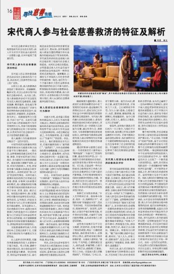 宋代商人參與社會慈善救濟的特征及解析