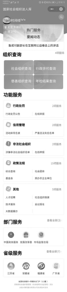 國家社會組織法人庫微信小程序(全國社會組織一網(wǎng)通辦總門戶)——面向登記管理機關(guān)、社會組織和社會公眾提供7大類30余項在線服務(wù),具體內(nèi)容包括: