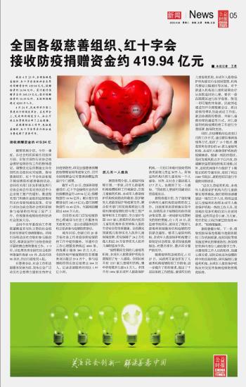 全國(guó)各級(jí)慈善組織、紅十字會(huì)接收防疫捐贈(zèng)資金約419.94億元