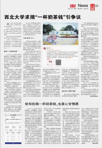 西北大學(xué)求捐“一杯奶茶錢”引爭議