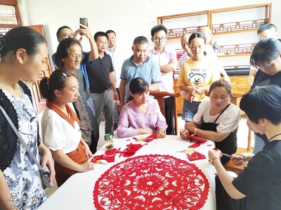 2021年7月20日,紅色文藝輕騎兵司空山詩(shī)社小分隊(duì)赴岳西縣田頭鄉(xiāng)采風(fēng)創(chuàng)作,圖為隊(duì)員在非遺教育傳習(xí)基地實(shí)地采訪