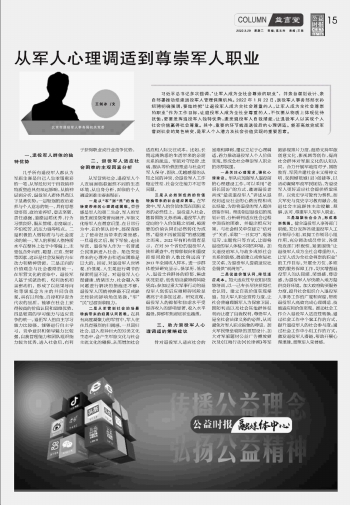 從軍人心理調(diào)適到尊崇軍人職業(yè)