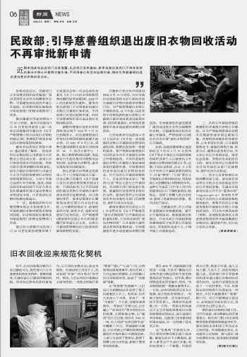 民政部:引導(dǎo)慈善組織退出廢舊衣物回收活動 不再審批新申請