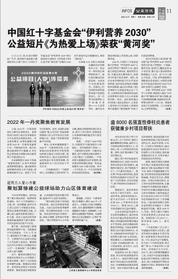 中國紅十字基金會“伊利營養(yǎng)2030” 公益短片《為熱愛上場》榮獲“黃河獎”