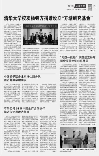 清華大學(xué)校友楊錦方捐贈設(shè)立“方塘研究基金”