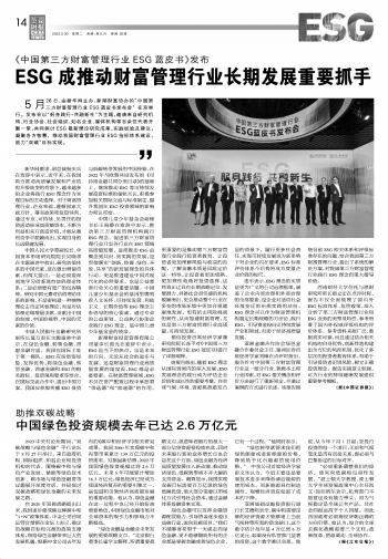 ESG成推動財富管理行業(yè)長期發(fā)展重要抓手