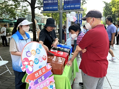 6月2日,上海市虹口區(qū)環(huán)瑞虹社區(qū)發(fā)展共同體第三屆社區(qū)美鄰節(jié)活動(dòng)現(xiàn)場(chǎng),志愿者在給居民講解垃圾分類(lèi)知識(shí)(圖片來(lái)源:中國(guó)青年報(bào))