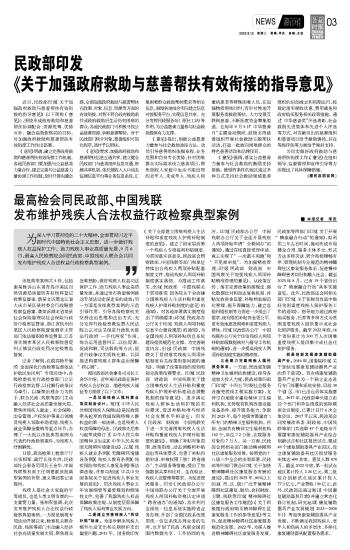 最高檢會(huì)同民政部、中國(guó)殘聯(lián)發(fā)布維護(hù)殘疾人合法權(quán)益行政檢察典型案例