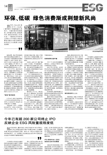今年已有超200家公司終止IPO 反映企業(yè)ESG風(fēng)險(xiǎn)重視程度低