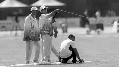 11月1日下午,學(xué)青會(huì)高爾夫項(xiàng)目比賽現(xiàn)場,由于天氣炎熱,一名球童突然中暑倒地。很多工作人員都是第一次遇到到這種狀況,但大家并沒有慌亂。很快,鄧昕就看到現(xiàn)場有人跟醫(yī)護(hù)人員聯(lián)系,球場上的志愿者也迅速作出反應(yīng),大家為這名球童遮擋陽光,給他敷上冰袋,并維護(hù)著現(xiàn)場的秩序。