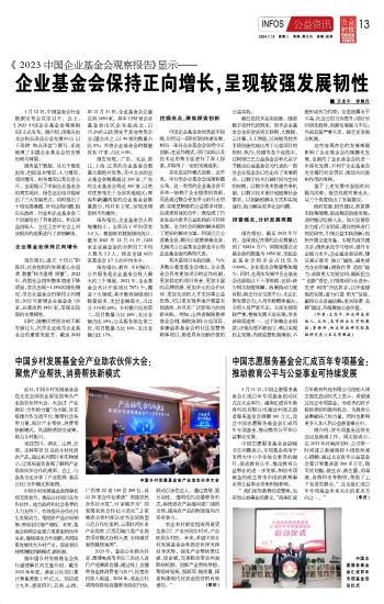 《2023中國企業(yè)基金會觀察報告》顯示—— 企業(yè)基金會保持正向增長,呈現(xiàn)較強發(fā)展韌性