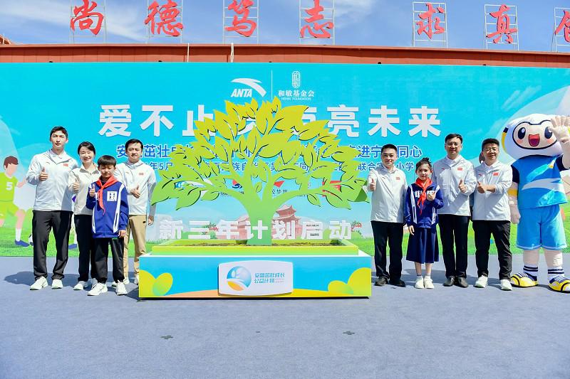 寧夏吳忠同心縣,一場小學(xué)校級籃球賽拉開帷幕。 場內(nèi),每個小運動員都神情專注;場外,觀眾屏息凝視。只見四年級的龍小虎一鼓作氣縱身飛躍,在對準(zhǔn)籃筐投球的一剎那對方同學(xué)連忙飛身擋球,球經(jīng)籃筐邊緣反彈到籃板上又回到了龍小虎手里。他再次一個三大步、躍起、抬手,一個空心球徑直穿過籃筐?!暗梅?!”氣氛一下子被點燃,吶喊聲震耳欲聾,同學(xué)們打得更加起勁。 這是同心縣王團鎮(zhèn)聯(lián)合完全小學(xué)新籃球場落成后,學(xué)校發(fā)起的第一場籃球賽。這塊包括籃球場、足球場、運動跑道等在內(nèi)的近3000平方米的整體運動場,由安踏茁壯成長公益計劃捐建。對于龍小虎和王團鎮(zhèn)聯(lián)合完全小學(xué)的所有孩子來說,新運動場的意義“可太大了”。 “村小”里的專業(yè)運動場 龍小虎所在的同心縣王團鎮(zhèn)聯(lián)合完全小學(xué)是一所“村小”,根據(jù)我國的教育體制設(shè)置,一個鄉(xiāng)鎮(zhèn)通常會設(shè)置一個中心小學(xué),中心小學(xué)下設(shè)學(xué)區(qū),而“村小”就是這些學(xué)區(qū)下設(shè)的農(nóng)村小學(xué)。它又包括“完全小學(xué)”和“不完全小學(xué)”,所謂“完全小學(xué)”,就是指從一年級到六年級皆齊全的學(xué)校。 王團鎮(zhèn)聯(lián)合完全小學(xué)的孩子多酷愛籃球,課前、課間、放學(xué)后,約上三五同學(xué)打場比賽是約定俗成的習(xí)慣,班級之間常常會熱火朝天地來一場“班BA”,籃球也是這里的“校級運動”:學(xué)校多次出征專業(yè)賽事,并在2022年、2023年分別獲得縣級小學(xué)籃球聯(lián)賽亞軍和冠軍;2023年在寧夏省級小學(xué)籃球聯(lián)賽中摘得季軍。小小的籃球承載著著孩子們“大大的夢想”。 而對龍小虎來說,此前,他的“夢想”也伴隨著經(jīng)常的“疼痛”:原來的操場是“一大片的水泥地”,由于水泥地過于堅硬,“同學(xué)們跑步、打球的時候一旦摔倒,很容易破皮或者磕傷?!?br> 現(xiàn)在則不同了,水泥操場正式“退役”,孩子們的運動傷痛記憶也成為歷史。新的足球場采用了人造草皮,運動跑道采用EPDM顆粒,籃球場采用硅PU材質(zhì)——安踏公益為孩子們悉心打造的,是一塊國家專業(yè)標(biāo)準(zhǔn)的運動場?!艾F(xiàn)在學(xué)校運動場的地面是有彈力的,劇烈運動時有緩沖,同學(xué)們再也不會磕傷了,運動完腳和膝蓋也不會疼?!饼埿』⒄f。 在專業(yè)的運動場地肆意跑跳,是安踏茁壯成長公益計劃為孩子們精心打造的一次體育教育融合發(fā)展的系統(tǒng)性規(guī)劃。按照這項長期計劃的系統(tǒng)性設(shè)計,除了運動場,安踏公益還為王團鎮(zhèn)聯(lián)合小學(xué)帶來了包括安踏夢想中心、安踏裝備包等硬件設(shè)施的捐建以及“軟性”支持:通過線上和線下培訓(xùn)一線鄉(xiāng)村體育教師的組合方式,幫助更多體育教師更新教學(xué)理念、豐富教學(xué)內(nèi)容和教學(xué)方法,眾多一線體育教師會接受系統(tǒng)性體育教學(xué)培訓(xùn),并帶著安踏體育課來到孩子們中間。 親歷了這些“軟性”改變,作為校長兼任體育教師的李宗軍很欣喜。他認(rèn)為,安踏體育課從根本上提升了“村小”的體育教學(xué)質(zhì)量,由教師作為支點,撬動了學(xué)生的運動興趣和習(xí)慣養(yǎng)成,“安踏體育課真正打開了我們教師的視野,這樣的體育課不僅是我的夢想,更是所有孩子共同的期待。” 7億元,安踏體育育人工程“新三年” 5月30日,安踏集團茁壯成長公益計劃與和敏基金會一同走進(jìn)寧夏回族自治區(qū)吳忠市同心縣王團鎮(zhèn)聯(lián)合完全小學(xué),站在新的運動場上宣布:安踏茁壯成長公益計劃未來三年(2024年-2026年)將向中國欠發(fā)達(dá)地區(qū)再捐7億元現(xiàn)金及物資,預(yù)計到2026年總計惠及1000萬名鄉(xiāng)村青少年。安踏集團支持慈善公益事業(yè)的善款也將超過30億元。 這標(biāo)志著以“安踏茁壯成長公益計劃”為代表的安踏集團公益體系中體育育人工程正式進(jìn)入全新的“3.0”階段。 王團鎮(zhèn)聯(lián)合完全小學(xué)運動場是“安踏茁壯成長公益計劃”捐建的第50塊運動場,沿著之前49塊運動場的時間跨度回溯,我們發(fā)現(xiàn)更廣闊的視域指引著安踏公益的思考與實踐。 2017年,黨的十九大報告明確提出了“堅決打贏脫貧攻堅戰(zhàn)”的戰(zhàn)略任務(wù)。鄉(xiāng)村教育作為我國教育的重要陣地,主要承擔(dān)著為鄉(xiāng)村振興、新農(nóng)村發(fā)展培育人才的重要任務(wù),通過體育教育模式提升青少年的體育素養(yǎng)、文化素養(yǎng)和健康素養(yǎng)也成為國家扶貧戰(zhàn)略的重要抓手。 作為中國體育產(chǎn)業(yè)一份子的安踏,深諳體育背后所蘊藏的教育價值。如何以實際行動助力國家戰(zhàn)略部署落到實處,也是安踏集團的“必答題”。 安踏集團副總裁李玲是這項計劃的主要推動者和深度參與者,她表示,“2017年,經(jīng)過對我國18個省份的調(diào)研,我們發(fā)現(xiàn)處于鄉(xiāng)村全面振興階段的中西部地區(qū)的大部分學(xué)校,還存在體育設(shè)施不完善、沒有體育教師的情況,很多孩子非常渴望專業(yè)的體育課,這是項目發(fā)起之初情況?!?br> 安踏茁壯成長公益計劃應(yīng)運而生。安踏集團攜手中國青少年發(fā)展基金會和上海真愛夢想公
