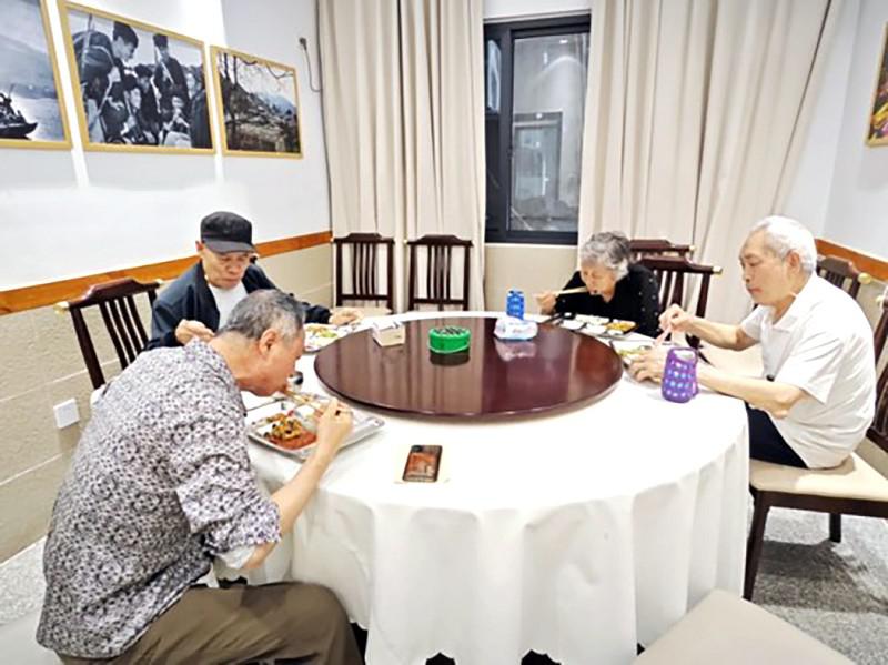 中午時分,老年人將餐吧圍了一桌又一桌,一邊吃飯一邊聊著天?!拔颐刻熘形缍紒沓裕瑢︼埐撕軡M意,從家里過來也就5分鐘的路程。在這里吃飯方便省時,孩子也不用擔(dān)心?!?3歲的呂爺爺每天都要和幾個“老伙伴”相約來吃飯,一頓飯變成了老年人每天必備的社交活動。
