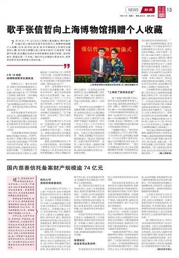 歌手張信哲向上海博物館捐贈個人收藏