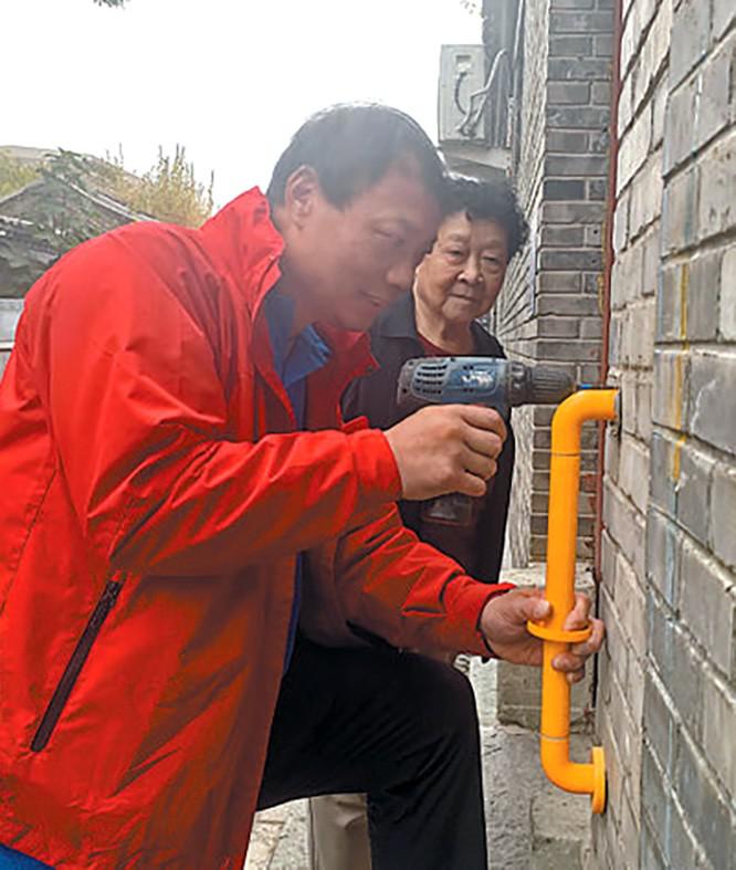 不知不覺(jué),快到中午。楊占嶺起身告別,走到大門(mén)口,發(fā)現(xiàn)墻上的無(wú)障礙扶手歪斜,一顆螺絲釘快掉下來(lái)了?!斑@多危險(xiǎn),得趕快修好!”楊占嶺趕忙取來(lái)電動(dòng)螺絲刀,將扶手牢牢固定在院墻上,“這下穩(wěn)當(dāng)了!”