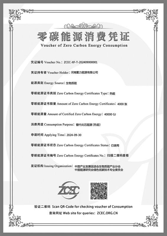 零碳能源證書(shū)認(rèn)購(gòu)簽約儀式上,簽約方完成零碳能源證書(shū)認(rèn)購(gòu)協(xié)議簽署,每張零碳能源證書(shū)交易價(jià)60元。在國(guó)內(nèi)首張零碳能源消費(fèi)憑證頒發(fā)儀式上,生物質(zhì)能產(chǎn)業(yè)分會(huì)會(huì)長(zhǎng)鄭朝暉為河南氫力能源有限公司頒發(fā)憑證,完成了平臺(tái)從證書(shū)申請(qǐng)、監(jiān)測(cè)、核查、核發(fā)、認(rèn)購(gòu)、交易和消費(fèi)全流程的閉環(huán)。