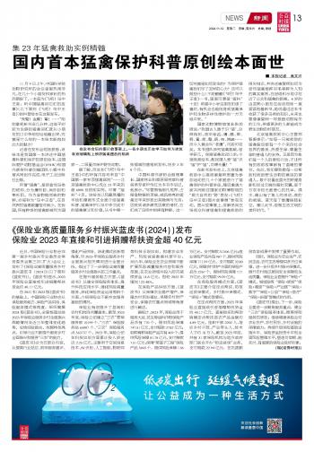 《保險(xiǎn)業(yè)高質(zhì)量服務(wù)鄉(xiāng)村振興藍(lán)皮書(2024))發(fā)布保險(xiǎn)業(yè)2023年直接和引進(jìn)捐贈幫扶資金超40億元