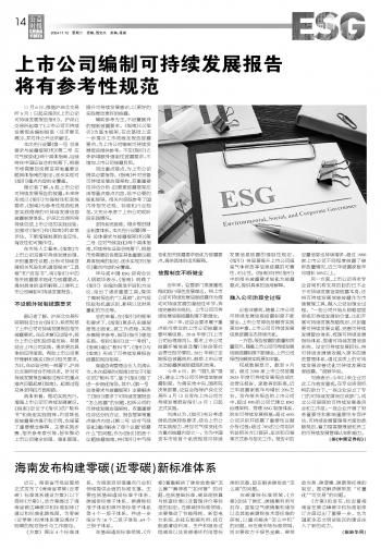 上市公司編制可持續(xù)發(fā)展報告將有參考性規(guī)范