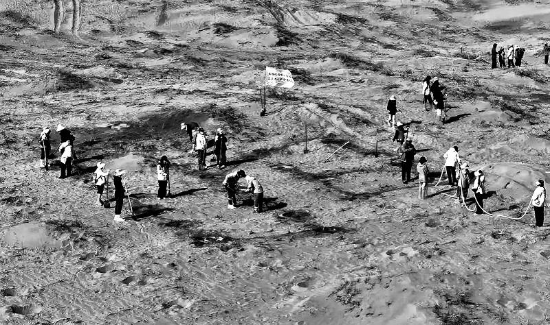 甘肅省民勤縣涌入一群年輕人。 民勤位于河西走廊東北部、石羊河流域下游,東西北三面被騰格里和巴丹吉林兩大沙漠包圍,是全國荒漠化、沙化最嚴重的縣區(qū)之一。 長期以來,民勤人在長達408公里的風沙線上種樹壓沙,建成300多公里的防護林帶。2014年至2019年,該縣荒漠化面 積 占 比 從 90.34%下 降 到88.18%。 如今,一句“歡迎到民勤種樹”,一群來自全國各地的志愿者,讓民勤被更多人看見。 種樹 早春,微風,氣溫回升,土壤解凍,草木已過休眠期,正是種樹的好時節(jié)。 在民勤縣收成鎮(zhèn)興隆村東南方向的騰格里沙漠邊緣,記者看到打坑車在沙地里走走停停,留下整齊的圓坑。志愿者們跟著打坑車上前補挖,一個個長4米、寬2米的方格逐漸成型。 一個方格,就是一棵成年梭梭能固沙的大致范圍。40厘米左右深的種植坑挖好后,梭梭、花棒、檸條等抗風沙的苗木被栽下,緊貼坑壁以防倒伏,接著是澆水、回填、壓土……一天下來,又有100余畝沙地里“長”出了樹苗,超過10個標準足球場的面積。 這是600多名志愿者一天的共同成果。他們來自全國各地,不少是90后、00后,有的已不是第一次來。 一群年輕人,為何扎進沙漠種樹? 2024年春天播出的一檔綜藝節(jié)目讓民勤脆弱的生態(tài)環(huán)境和艱苦的治沙工作受到更多關(guān)注,陸續(xù)有人自發(fā)前來。同年11月,一名甘肅小伙喊出“歡迎到民勤種樹”。視頻在社交媒體上熱傳,網(wǎng)友紛紛留言響應(yīng)?!拔覀儾皇莵碜沸堑?,這里沒有星,我們是來做事的。”來自蘇州的白春瑤說,去年第一次來民勤,確實是受偶像影響,但自從踏上這片土地,看到風沙里的梭梭,她想的只是怎么把種樹這件事做成。 今年再次來到這里,白春瑤成了小組長,負責為幾十人分工、講解要點。種樹期間,志愿者們有的住在夜間氣溫零下的帳篷、板房里,有的每天乘車從40公里外的縣城趕到沙漠,再扛著鐵鍬步行半小時前往種植區(qū),在日曬下挖坑、插苗、澆水?!按蠹叶己苷J真地在做這件事?!痹S多細節(jié)讓白春瑤覺得“這事兒能成”:“比如種樹的順序,去年是由近到遠種,我當時就覺得,往遠處走的時候,很容易踩到已經(jīng)種好的樹,沒想到今年真的改了。” 治沙 60厘米左右的梭梭樹苗,成年后能長到3米以上,根系深入地下,牢牢鎖住沙土。 民勤位于騰格里和巴丹吉林兩大沙漠的夾縫之中,處于國家生態(tài)安全戰(zhàn)略格局中的“北方防沙帶”,是全國荒漠化、沙化最嚴重的縣區(qū)之一,當?shù)厮赜小笆鼐派?,非灌不殖”之說。 一部民勤志,半部治沙史。在這次的“種樹熱”背后,民勤人堅持種樹壓沙已有多年,石述柱、范玲花等老一輩治沙人的故事廣為流傳。 網(wǎng)絡(luò)上民勤種樹的視頻下,常有人留言問“怎么種,聯(lián)系誰”?;貜椭校靶≈俑纭焙汀榜R哥”被頻繁提起?!靶≈俑纭泵兄禀?,民勤縣西渠鎮(zhèn)人,是一名95后。和許多民勤人一樣,仲麟的童年記憶里總有漫天黃沙以及忙著種樹、制作擋風墻的長輩,“印象最深的一次,風沙過境,天都是黑的?!?br> 大學時,仲麟嘗試在老家種下500棵梭梭,但由于經(jīng)驗不足,這批樹最終成活的寥寥可數(shù)?!皼]有想的那么簡單?!碑厴I(yè)前夕,仲麟再次回到民勤,作為志愿者參與春種。記錄數(shù)據(jù)、反復試驗,仲麟逐漸摸索出一套有效的種樹方法——樹苗種植深度在40厘米左右,順風方向栽植。這樣種下的梭梭成活率能達到80%。 2023年,仲麟和十幾名村民在興隆村種下了300畝公益林,而后又將這里發(fā)展為仲麟生態(tài)公益林基地。2024年,5000多名志愿者在此參與種樹。 在距興隆村百余公里的四方墩生態(tài)林基地,記者見到了有相似經(jīng)歷的“馬哥”馬俊河。 80后馬俊河也是土生土長的民勤人。2006年,在外工作的馬俊河聽說民勤綠洲未來可能會被兩大沙漠侵吞,便回到家鄉(xiāng),發(fā)起“拯救民勤志愿者綠洲行動”。 2007年以來,馬俊河組織志愿者在民勤種樹,開展生態(tài)治理,讓8萬畝沙地披上了綠裝?!耙郧胺N下的第一批梭梭已經(jīng)有5米高了?!?br> “綠洲內(nèi)部道路沿線、村莊周邊的零星沙地治理,交給公益機構(gòu)和當?shù)馗刹咳罕??!泵袂诳h林草局工作人員介紹,多方努力下,民勤已經(jīng)形成了重點工程和社會力量結(jié)合的治沙格局,“青土湖、龍王廟、西大河等重點風沙口治理主要依托國家‘三北’工程?!?br> 近年來,民勤“沙進人退”的態(tài)勢得到遏制,408公里的風沙線上建成了300多公里的防護林帶。干涸了50多年的青土湖也逐漸恢復水域面積,2024年達到27.65平方公里。 可持續(xù) “多的時候,每天有七八百人來到基地?!?br> 截至今年5月中旬,仲麟發(fā)起的志愿種樹活動已經(jīng)有2.7萬人參與。馬俊河負責的四方墩生態(tài)林基地也已接待8000余人。 民勤如何接住這巨大的善意? “至少要讓大家吃上一口熱鍋飯?!敝禀胝f,沙漠環(huán)境惡劣,風沙說來就來,搭建基地是為了能讓志愿者就近吃飯,有休息的地方。 名為“基地”,其實就是十幾間板房和幾頂帳篷,承擔著住宿、接待、展覽等功能。露天做飯,用水要從村里拉來,3月19日通電前,用電依靠太陽能光伏板?;剡€委托了固定的車隊,負責每天接送志愿者往返于種樹點和縣城之間。 “困難肯定是有,但基本都能克服?!迸d隆村村委會主任潘從文是基地的“老熟人”,大家喜歡叫他“潘叔”。潘叔幾乎