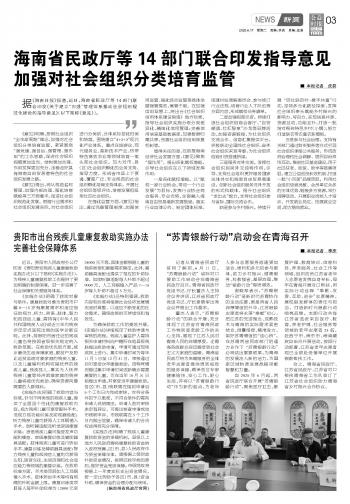 海南省民政廳等14部門(mén)聯(lián)合印發(fā)指導(dǎo)意見(jiàn)加強(qiáng)對(duì)社會(huì)組織分類培育監(jiān)管