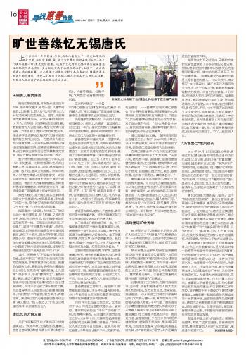 曠世善緣憶無錫唐氏