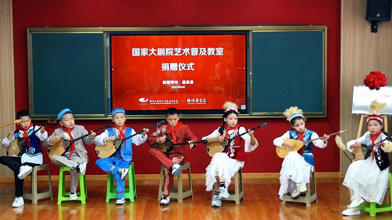 國家大劇院藝術(shù)普及教室,采用“線下空間改造+線上資源賦能”的立體幫扶模式,以“小空間”激活“大文化”,既是首都連接邊遠(yuǎn)地區(qū)的“美育橋梁”,也是國家大劇院在邊遠(yuǎn)地區(qū)的“美育陣地”。 ■ 本報記者 高文興 在祖國邊陲,新疆的西北端,坐落著這樣一個與哈薩克斯坦共和國接壤的小城——博爾塔拉蒙古自治州溫泉縣。這片僅有7萬多人口的靜謐之地,其三面被高聳入云的連綿雪山所包圍,像是被巨人藏入懷抱的一顆稀世之珍,驚艷動人,卻隱秘地不為外界察覺。 9月中旬的晚上,溫泉縣已倍感寒意,至21時,漫長的白日卻才舍得向這里做最后告別。然而,一片雷鳴般的掌聲和歡呼又陡然劃破這天山腳下的寧靜,一場國家級頂尖水準(zhǔn)的歌舞盛宴此時拉開帷幕——在新疆維吾爾自治區(qū)成立70周年之際,國家大劇院藝術(shù)發(fā)展基金會為溫泉縣帶來的藝術(shù)火種,正烘托著這顆邊陲明珠釋放其更加璀璨的光芒。 “藝術(shù)普及教室”落地溫泉 助力多民族文化永葆活力 溫泉縣城位于海拔1700米的博格達(dá)爾山的山腳下,博格達(dá)爾在蒙語中意為“神山的背后”。雖然地處遙遠(yuǎn),但千年來,在這座神山的注視下,漢族、蒙古族、哈薩克族、維吾爾族等多民族共同譜寫出了一曲曲世代傳唱的動人歌謠,當(dāng)?shù)氐拿晒抛宥陶{(diào)更從大山背后傳出,成為了國家級的“非遺”代表性項目。 9月17日,國家大劇院藝術(shù)發(fā)展基金會攜國家大劇院歌唱家遠(yuǎn)赴溫泉縣,與溫泉縣烏蘭牧騎展開交流,為草原輕騎兵捐贈樂器,并與他們聯(lián)手為當(dāng)?shù)匕傩辗瞰I(xiàn)了兩臺高水準(zhǔn)的演出,將最優(yōu)質(zhì)的文化資源送抵祖國的邊境線。 于是,便有了文章開頭的一幕——千余名當(dāng)?shù)匕傩赵谝归g涌進(jìn)溫泉縣文化中心劇場,他們的熱情激發(fā)出了演員們的高水準(zhǔn)表演,將晚會推向一個又一個高潮。 巴音巴特已經(jīng)是溫泉縣烏蘭牧騎第五任隊長,當(dāng)天,他全程參與了和大劇院歌唱家的交流以及同臺演出,他在演出后接受《公益時報》記者采訪時表示,在過去,烏蘭牧騎的創(chuàng)作和演出條件艱苦,經(jīng)?!耙蕴鞛槟徊迹缘貫槲枧_”,這次國家大劇院帶來的樂器有鋼琴、二胡、三弦等,“豐富了我們的樂器品種,讓演員的創(chuàng)作、表演和舞蹈編曲更上一個臺階。國家大劇院藝術(shù)家與基層藝術(shù)團(tuán)隊的深入交流,也讓我們受益匪淺,他們千里迢迢的到來讓我們深切感受到了來自祖國的溫暖?!?br> 溫泉縣烏蘭牧騎生生不息的傳承基因,必然與當(dāng)?shù)孛耖g世代熏陶和培養(yǎng)密不可分,而小學(xué)基礎(chǔ)教育則是將藝術(shù)種子進(jìn)行集中播撒的關(guān)鍵階段。鑒于此,國家大劇院團(tuán)隊本次新疆溫泉之行的“重頭戲”,則是為溫泉縣城鎮(zhèn)小學(xué)精心打造一間“藝術(shù)普及教室”。 據(jù)了解,溫泉縣城鎮(zhèn)小學(xué)是當(dāng)?shù)匾蛔兄凭脷v史和美育教育傳統(tǒng)的學(xué)校,目前在校學(xué)生1052名,其中90%為少數(shù)民族。校長王麗娜表示,學(xué)校配備了6間音樂教室和4名音樂教師,基本滿足教學(xué)需求,但面對孩子們更高的藝術(shù)渴求,在樂器等基礎(chǔ)設(shè)備上還難以滿足。 而新落成的“藝術(shù)普及教室”中,教學(xué)一體機(jī)、音響、鋼琴、合唱臺等先進(jìn)硬件設(shè)施一應(yīng)俱全,師生們還可以通過線上課堂來獲取更多的教材和音視頻。9月18日上午,在“藝術(shù)普及教室”捐贈儀式過后,城鎮(zhèn)小學(xué)的學(xué)生們表演了蒙古舞蹈《吉祥的筷子》、蒙古短調(diào)《察哈爾八旗》、維吾爾族舞蹈《快樂的童年》、冬不拉合奏《我的伙伴》、鋼琴演奏《噴泉》等精彩節(jié)目,展現(xiàn)了多民族文化的交融與活力。 此次隨隊前來的國家大劇院藝術(shù)家金鄭建、胡越,在驚嘆于小小年紀(jì)的孩子們有如此藝術(shù)天賦之余,分別為學(xué)校的社團(tuán)學(xué)生指導(dǎo)演唱《祖國在我心窩里》《盧溝謠》,并為他們上了一場生動的“藝術(shù)第一課”。 看到孩子們在藝術(shù)家的啟發(fā)下被激發(fā)出的求知欲和表現(xiàn)力,校長王麗娜感慨地說道:“其實不是我們的孩子不行,而是我們原來缺少這樣高水平的師資。通過初期課程和藝術(shù)家的指導(dǎo),我們的孩子進(jìn)步很快,對發(fā)聲技巧、節(jié)奏把控和個人展示都有很大的提升。我們非常感謝,希望有更多這樣高水平的專家來到我們這個邊陲小城,為更多渴望通往藝術(shù)殿堂的孩子提供指導(dǎo)。” 國家大劇院創(chuàng)公益新舉 立體扶持鄉(xiāng)村美育陣地 而此次掛牌落成的“藝術(shù)普及教室”已是國家大劇院藝術(shù)發(fā)展基金會在全國打造的第五間教室。 據(jù)了解,國家大劇院藝術(shù)發(fā)展基金會成立于2022年年底,基金會以“資助文化藝術(shù)公益項目”為主,圍繞國家大劇院“人民性、藝術(shù)性、國際性”三項宗旨,構(gòu)建了全民美育、藝術(shù)資助和藝術(shù)交流三大項目體系。 “藝術(shù)普及教室”是2024年基金會創(chuàng)新開展的公益項目之一。當(dāng)年11月,基金會首站深入大興安嶺腹地的內(nèi)蒙古鄂倫春自治旗,為這一鄂倫春族的主要聚居地打造了兩間“藝術(shù)普及教室”,也為當(dāng)?shù)氐臑跆m牧